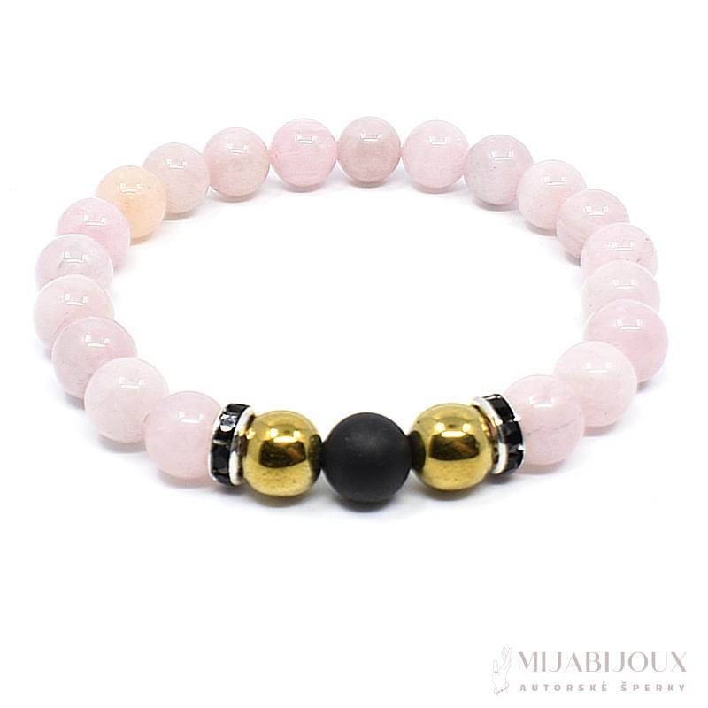 Náramek z minerálů růženín, hematit a onyx