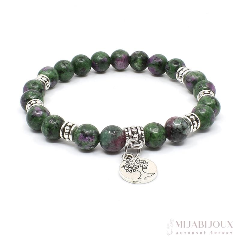 Materiálkorálky z minerálů zoisit s rubínem, bižuterní kov, nylonová pruženka 0,8 cm
