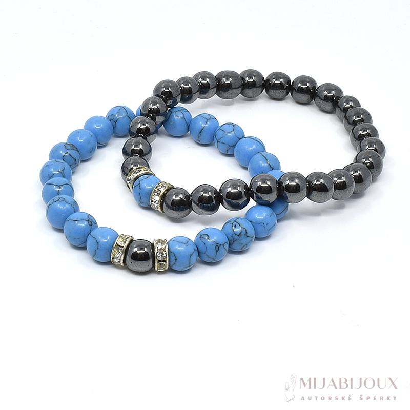 Partnerské náramky z minerálů tyrkys a hematitskladem499 Kč/ pár