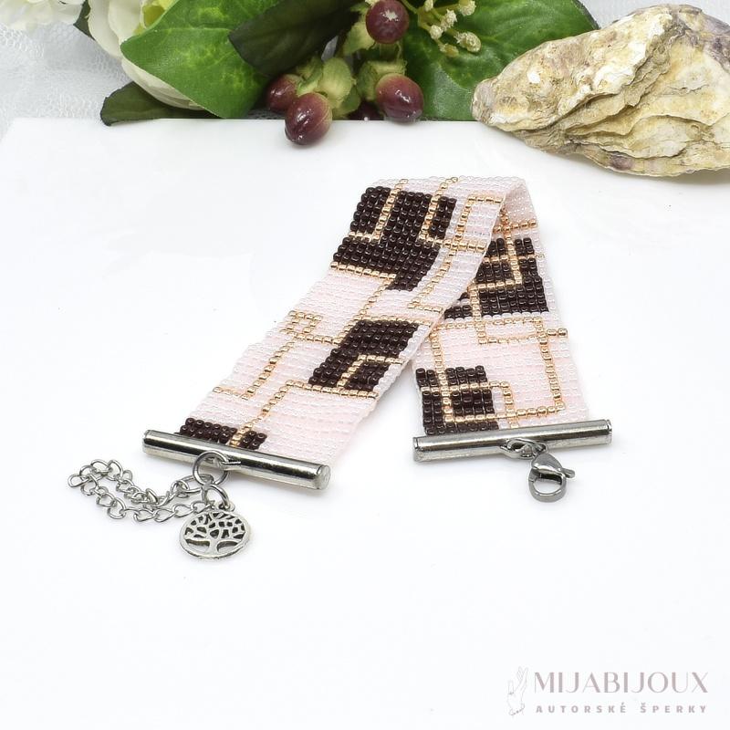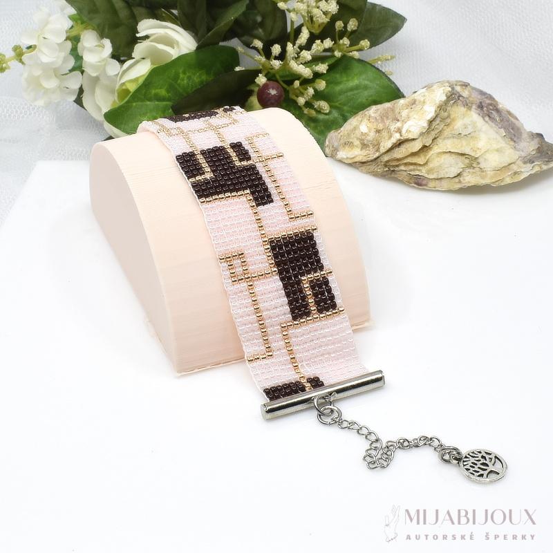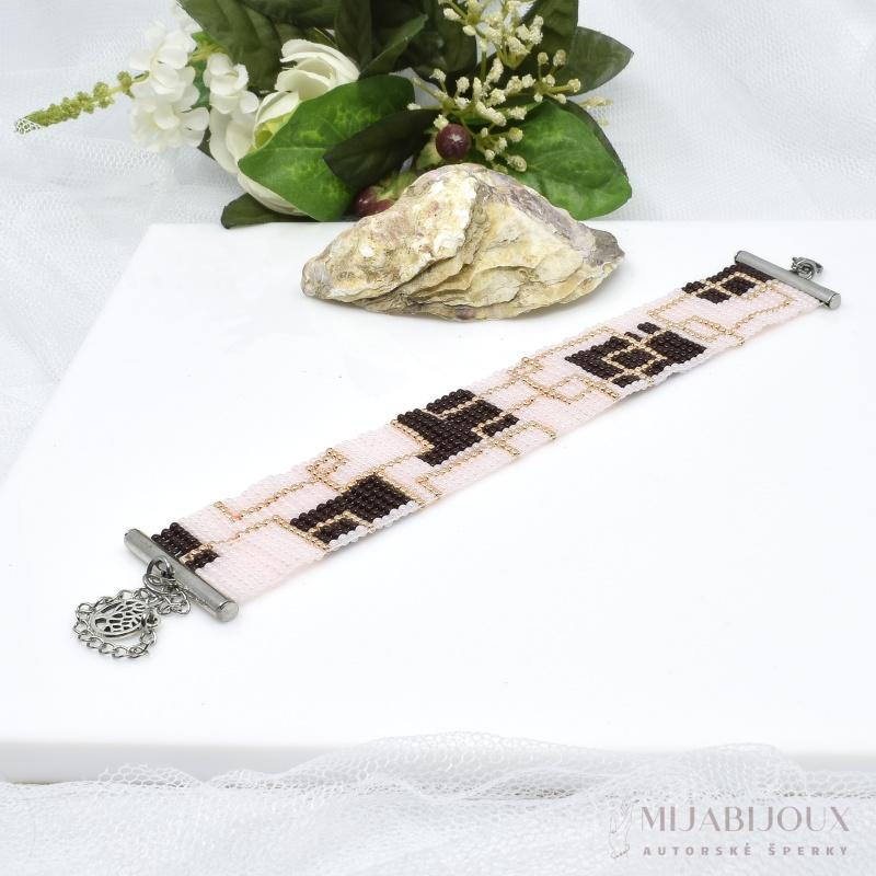 Tento masivní tkaný náramek z japonských drobných korálků Toho v barvách béžové, hnědé a zlaté doporučujeme těm, kteří hledají jedinečný a luxusní doplněk, jež vyčnívá svým designem a kvalitou. Vytváří pro jeho nositele pocit luxusu a výraznosti.