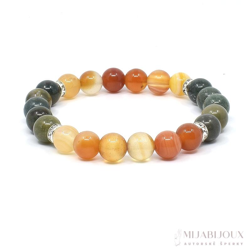 Náramek je vyroben z korálků přírodních minerálů indického a oranžového achátu o velikosti 8 mm.