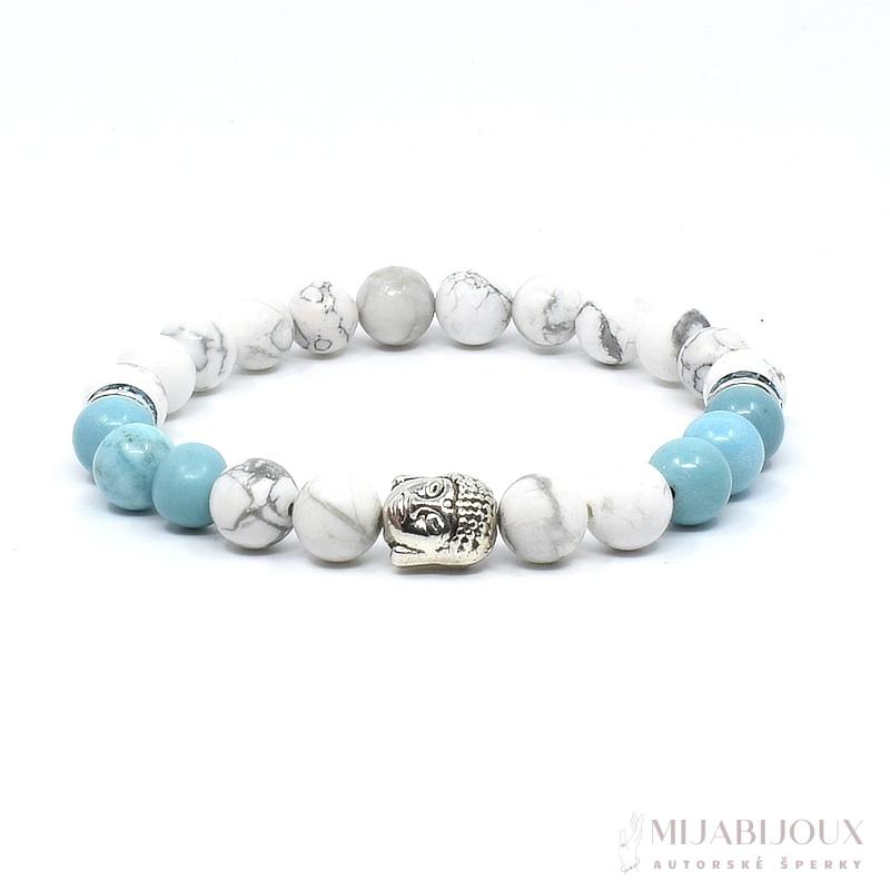 Náramek z přírodních minerálůstrukturovaný tyrkys a howlit. Korálky z minerálů o velikosti 8 mm jsou navlečeny na pevnou nylonovou pruženku.