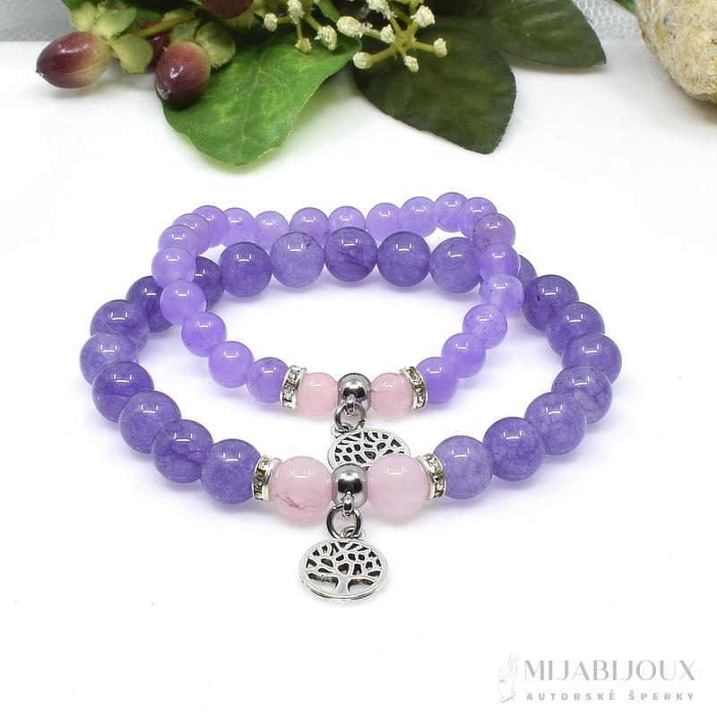 Spojte své srdce s těmi, na kterých vám nejvíce záleží! Elegantní náramky pro maminku a dceru jsou vyrobeny z fialového jadeitu (minerál jadeit je jemně dobarvený pro zvýraznění jeho přirozené krásy a intenzity) a růženínu, kamene lásky, harmonie a pozitivní energie. Každý náramek zdobí kouzelný přívěsek ve tvaru stromu života který znázorňuje nekonečný koloběh života, jeho růst a pevné kořeny, které nás spojují s naší minulostí i přítomností.