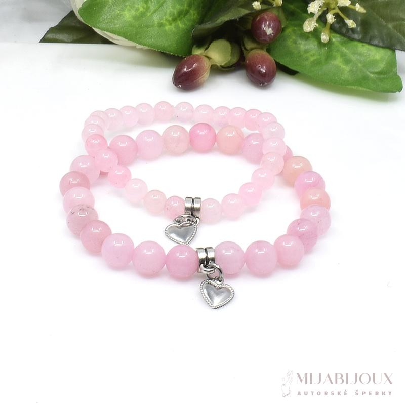 Jemnénáramky z přírodního růženínu pro maminku a dceru, ozdobené přívěskem ve tvaru srdce, který symbolizuje lásku, něžnost a harmonii. Světle růžový růženín je známý jako kámen srdce, podporuje sebedůvěru a pozitivní vztahy.