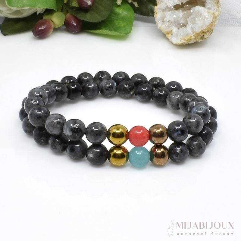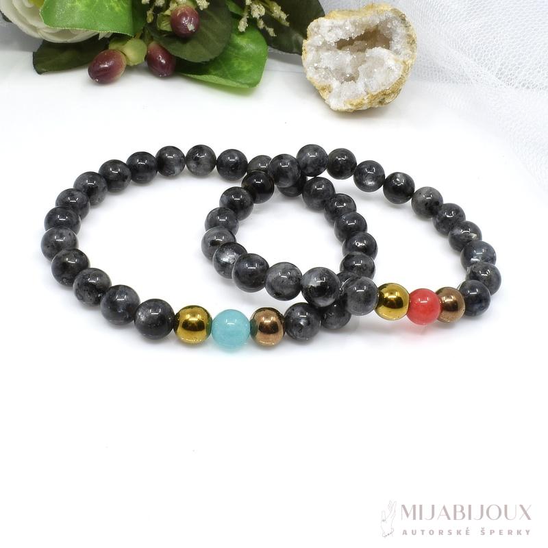 Výjimečné partnerské náramky z labradoritu, hematitu, amazonitu a karneolu – spojení čtyř minerálů, které symbolizují sílu, ochranu, klid a radost. Labradorit přináší inspiraci a posiluje intuici, hematit poskytuje ochranu a uzemnění, amazonit přináší klid, zatímco karneol dodává energii a optimismus Tyto náramky jsou ideální dárkem pro páry, které hledají hluboké spojení a harmonii.