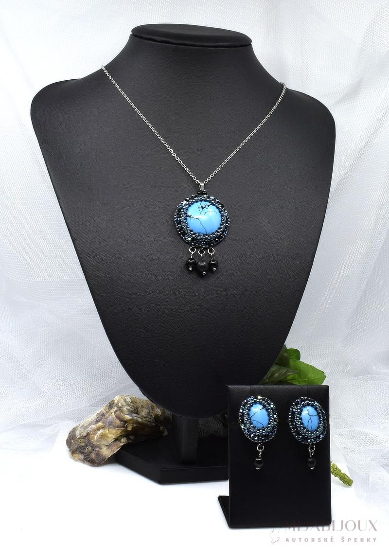 Vstupte do světa šitého šperku s elegantní soupravou náhrdelníku a klipsových náušnic z tyrkysu. Tyrkys, s jeho jedinečnými modrými odstíny, je symbolem klidu a harmonie, který dodá vašemu stylu šmrnc a osobitost.